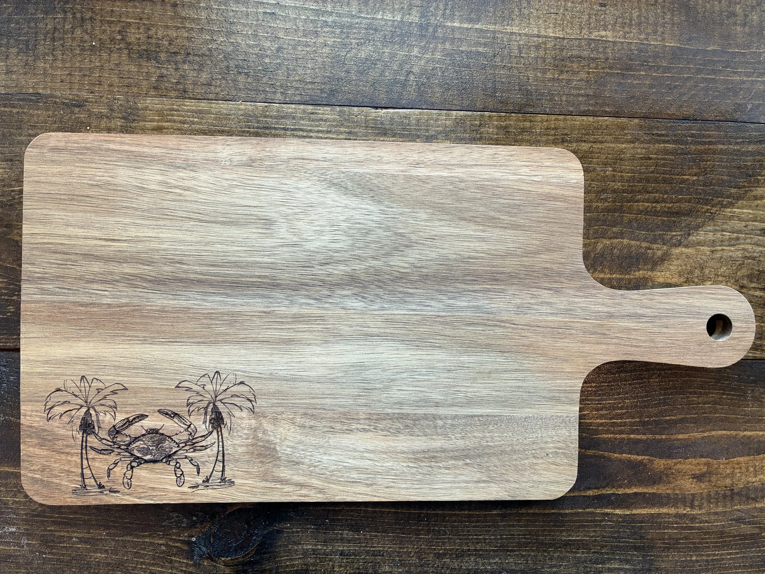 Provide an image of your choice, or tell us what text and/or graphics you would like, and we will laser engrave that on a cutting board (8”x16” overall; 8”x12” cutting surface).